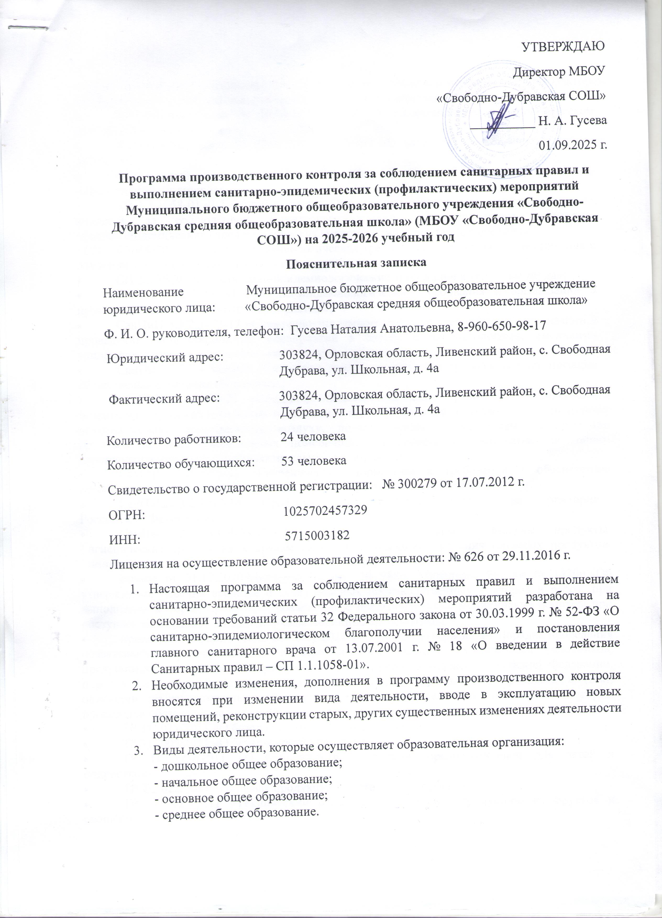 Директор школы - Гусева Наталия Анатольевна